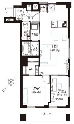 64.14m2 2LDK+WIC |