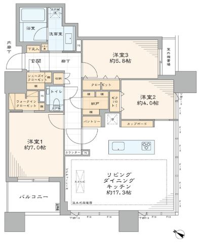 3LDK+WIC 鉄筋コンクリート造 |